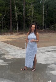 The Toccin Penny Racer Tie Front Midi Dress delivers sleek confidence with its curve-sculpting silhouette, tie-front detail, and sultry side slit. Style it with block-heel sandals and a woven clutch to effortlessly transition from rooftop drinks to dinner.