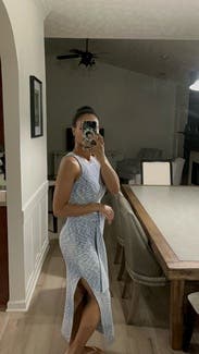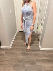 Well, this dress was a little too sexy with the tight fit and high slit. I am tall so the slim was high. Wore for date night in!