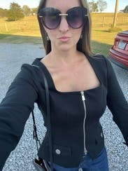 I wore this with dark jeans to a work dinner and I felt great. I love the neckline. It’s a fitted stretchy material and the small was perfect. I wore a strapless bra + black bandeau (chest area was a tad big on me)