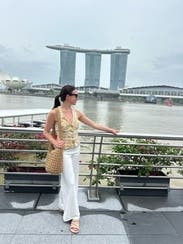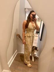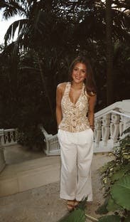 This halter top was verrrry cute for a daytime look on vacation! I wore it with white linen pants & it was very elevated. Loved!