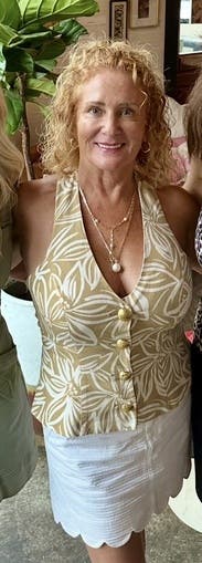 I loved this top and wore it several times but be warned the straps were way too long. I pinned them in the back. It was under my hair so no worries. The brass buttons are so classy and the whole outfit was perfect for summer work events. I often wear an 8 on top (10 on bottom) but I fear the 8 would have shown my belly. Which is not my style at this age.