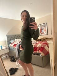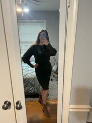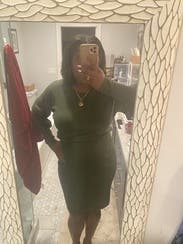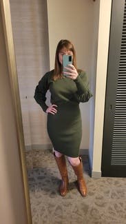 I live a good sweater dress but this one felt blah. The bottom half is very fitted, would need spanx to make it work. Pretty boring.