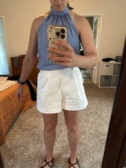 Really cute trouser shorts and high quality fabric! I’m between a 4 and a 6 and the 6 fit me perfectly, but if you’re between sizes I recommended sizing up! Zipper is also a little tricky