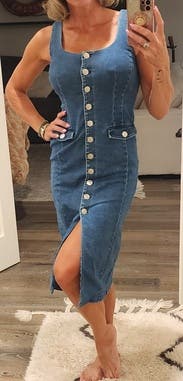 This dress is made very well. Buttons are sturdy & the denim is heavy. I’m curvy & it showed them off for sure. Felt like I needed spanx though. My husband loved it & asked me to purchase!
