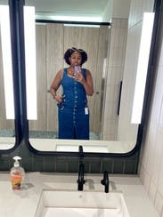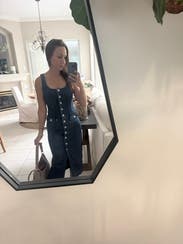 flattering fit, really good thick denim quality. seriously considered purchasing it! it’s great to pair with sneakers or sandals. also like that you don’t need to unbutton all the buttons to use the restroom. i sized up to wear during my 2nd/3rd trimester