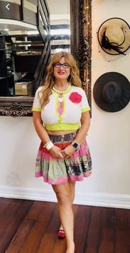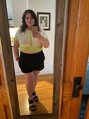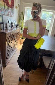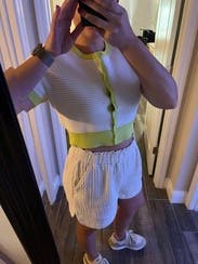 Wore this a bunch of times, so cute and so easy! I have a long torso so it was very cropped but perfect for summer, casual daytime wear. Love the neon yellow. Super comfy and not itchy at all.
