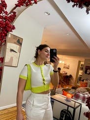 anything neon is an immediate slay for me (clearly) and this was adorable. heavy/well made knit and yes, it’s cropped, but i just did high waisted shorts and didn’t have a problem.