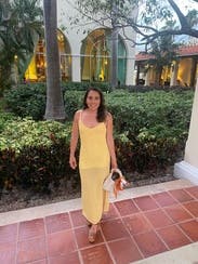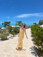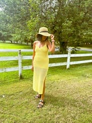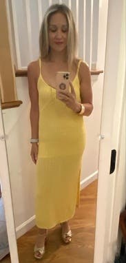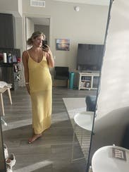 The PERFECT vacation dress. The shade of yellow compliment a tan to its finest. The length hit just perfectly with a little pair of kitten heels. The material feels high quality too! Felt like I was clothed in sunshine kisses!