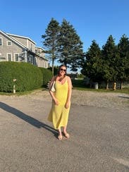 Was a super cute dress to wear on vacation but I wish I had noticed that it shows everything--not sheer, but showed my bellybutton--should have worn spanx or something with it over the belly. The shoulder straps needed to be about 1 inch shorter, but I made it work.