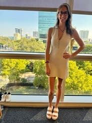 Perfect for a golf tournament- so many compliments! The fabric is nice and thick and ribbed so it helps hold everything together. It was short, but with sneakers worked perfectly for a sporty day look.