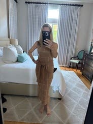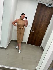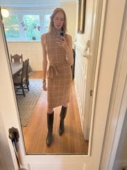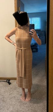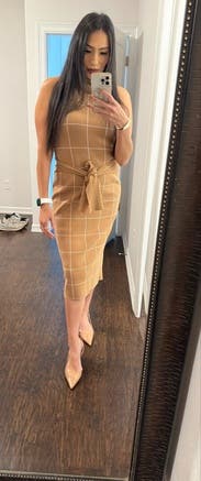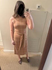 Fantastic fall neutral dress, extremely comfortable, and flattering. Can be dressed up or down. Could live in this!