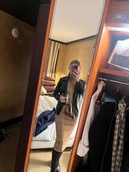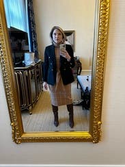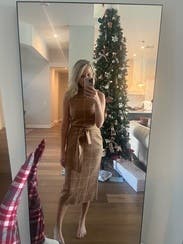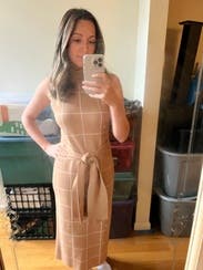 I really enjoyed this Toccin sweater dress. The color is sophisticated and the belt makes it have a nice shape. I added a cream sweater when out in elements.