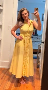 Buttons wouldn't button on my chest, but dress still looked great. Like a ray of sunshine.