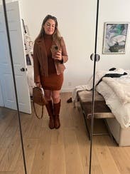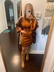 Wore this for Thanksgiving dinner and it screams fall! It's very form fitting, luckily I wasn't eating too heavy this dinner! Loved it!
