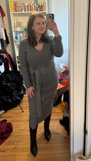 This dress was so darn cute on as a daytime dress with fun sneakers and then at night with boots. Loved it. So figure flattering with the tie. Will rent again.