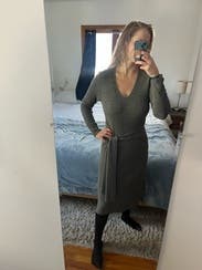 Wore this for work and dinner. So cozy and quasi sexy, but appropriate (likely could/should have sized down to an XS, but the room in the S was fine). Many compliments.