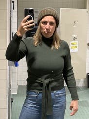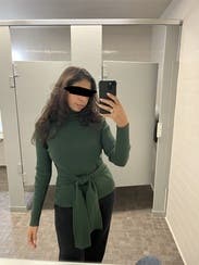 Beautiful top, loved the tie in the front, made it flattering. I was considering buying but just wasn't screaming yes to me. Nice solid basic, though