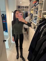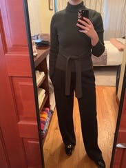 Loved the color of this item and the waist tie - very flattering. Didn't love the turtleneck on me though.