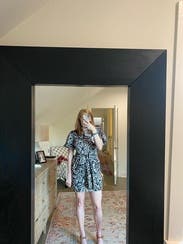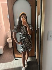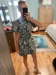 This dress is super cute. It’s a light material that buttons up in the front. The sleeves make it standout and give the dress a cool shape. Fit is true to size.