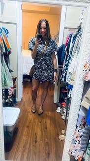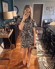 This dress is a tad short so if you are tall and long legs, proceed with caution. Otherwise comfy structured feel and cute!