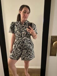 Loved the look of this but only felt comfortable wearing to a pool party because where the bottom button is. It felt shorter when my legs weren't together.