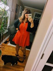 This dress was everything! I wore it to brunch and a soccer game and a date. The color is vivid. The Zipper is sexy. Can zip all the way up for church or…let some boob out for cocktail hour. Really enjoyed this one.