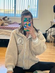 I wish I got an XS. So cute and got so many compliments. The varsity style trimmings make it more chic than your average shearling coat. Only thing to note is the buttons were a tad difficult to fasten, but that may get better with more wear.