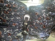 I wore this for work and for Thanksgiving. The fabric is really gorgeous and the design is easy to wear with snaps up the front and an elastic waist. And pockets. You can't see the great pointed collar in this photo but it is one of the best features of the dress. Another great Tory Burch dress!