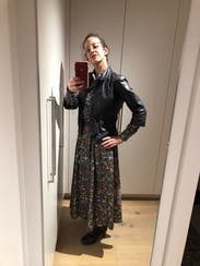I paired with black city cowboy boots and a Tory Burch leather belt. Loved this. Very fun and different! Compliments galore.
