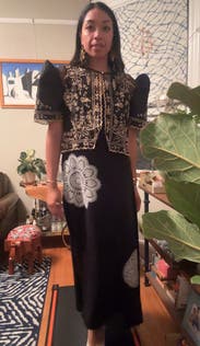Cannot say enough good things about this dress! Wore to a black dress event, and it stood out with the white embroidery. It was incredibly comfortable, fabric was high end and flowed beautifully when you moved. Would have purchased if not for the price!