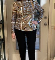 Wore this in Italy and got SO many compliments. Such a fun, fashionable top. The only reason I gave 4 stars is that if I zipped it up all the way, it was kinda choking me. Fit well otherwise though!