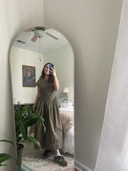 This is a game-changer. The silhouette is beautiful. The fabric is comfortable. There are POCKETS! The only thing I would change is defining the shoulders. It makes me look a little broader than I actually am. It's so lovely to hold on to for a while!