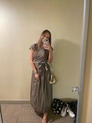 This dress had a lot of fabric and the cut/color are meant for a specific body type. It was elegant, but just wasn't right on me. I also had to iron it once I got it, the fabric wrinkles pretty easily.
