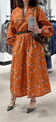 Perfect dress. Fabric is a great weight. Silhouette is flattering with or without a belt. Quintessential autumn dress.
