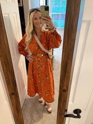 I wore this great dress to both a school event and to work. So comfy and great for fall. I didn't even think to belt it, but it was still flattering.