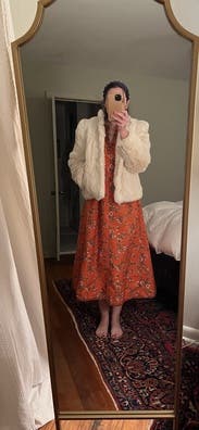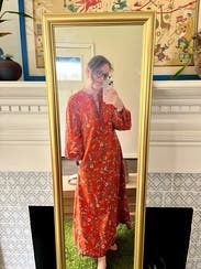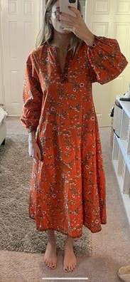 I loved this dress. I wore it for Christmas Eve because I thought it was red & green, however it's more orange than red. It still looked very cute and I made it more winter appropriate by adding a fur vest & booties. I wouldn't mind renting it again in the spring as it was so cute!