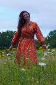 This is not my normal style at all, and it's basically cut like a giant mumu, but once I added a belt (my own) it looked fantastic. It's one of those rare garments that actually looks good belted despite having lots of extra fabric around the waist. I needed it for a photo shoot with frolicy field vibes and it delivered.