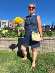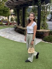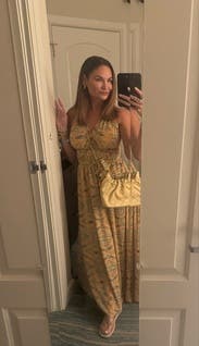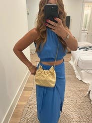 Beautiful beige leather…gold strap was an accessory in itself….wore multiple times…great for vacation outfits…everyday with tennies…and anytime I wanted that little bit of extra. 10/10