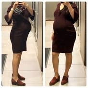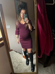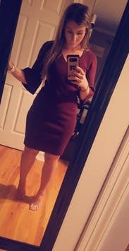 I wore this beautiful burgundy dress for my husbands work Christmas party. I was 17 weeks pregnant and this dress was not only comfortable to wear, but also looked great on my pregnant belly. I will definitely wear this again, pregnant or not!