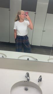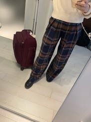 These were so cute and modern. The plaid has bright undertones but not crazy. Fit was great - nice in the waist and the wide leg wasn’t ridiculous. Tush looked great, and they are surprisingly versatile. A bit long, but looked cute pooled a little on the bottom.