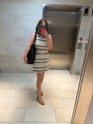 I’m so sad I didn’t take a picture wearing this at work. I loved this dress and almost purchased it. It fit so well and was super comfortable. Really great dress for the office on a summer day! And lots of compliments!