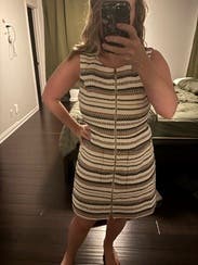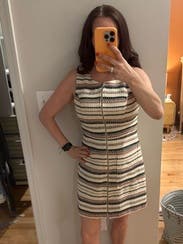 Super cute dress! Love the zipper front. I’m super tall and this was shorter but not too short! Will rent again!