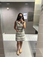 Fun, casual dress that was perfect for visiting wineries. Loved the ring on the zipper front. Perfect to wear with flats.