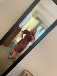 Loved this dress! It was a little long & baggy. I usually wear petite dresses. But the style & pattern was super cute.