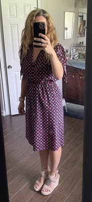 Nice dress overall Perfect fit Liked the cut especially around the collar Wasn’t 100% in love with the print which is why I rated it 4 stars instead of 5