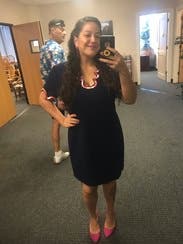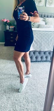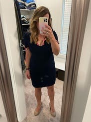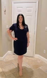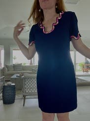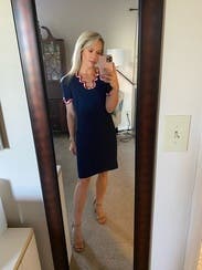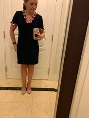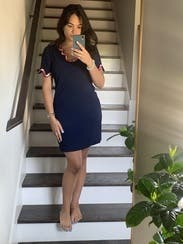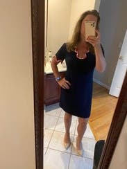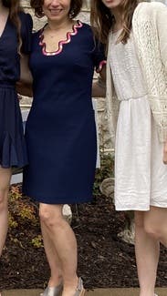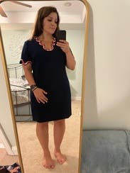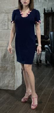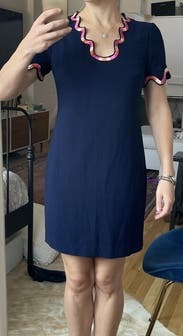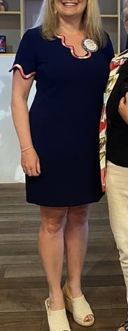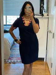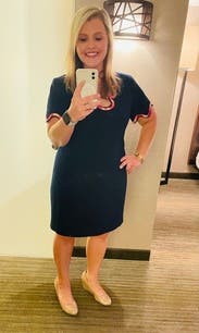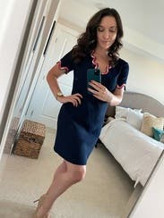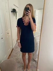 Absolutely loved this dress. It was perfect for work events - classic navy look with such fun accents. Was perfect to transition to dinner out with clients.