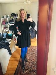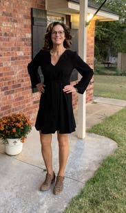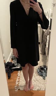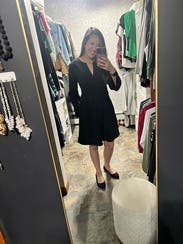 I was looking for a tailored but comfortable dress for work, mostly to cover up some added weight in my tummy and this was the perfect dress! Flattering all around and super comfortable! Paired with hot pink Rothy’s flats for a pop of color!
