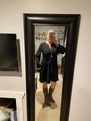 Very cute paired with boots for a cooler day. Only reason for one less star is there's no give in the armpit area which I'd prefer slightly more giving. I had rented the medium and had to go to a large because of the snug fit around the chest. Loved this look.