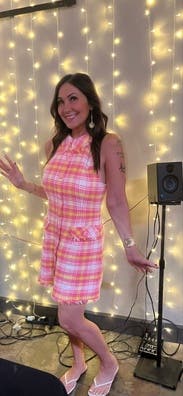 Compliments galore on this Trina Turk dress! I did wear a close fitting cropped tank underneath as the arm holes are a little long.