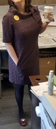 Great plaid, smart collar, got lots of compliments. And who doesn't like a dress with pockets?!?
